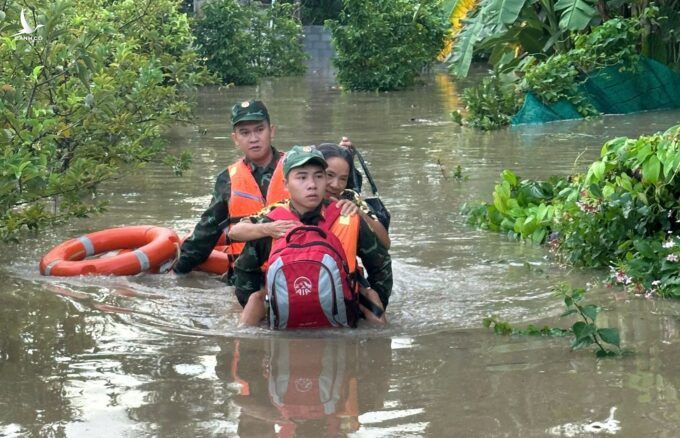 Cán bộ, chiến sĩ có mặt kịp thời tại các khu vực ngập lụt nặng, đó là điểm tựa vững chãi của người dân trong bão lũ